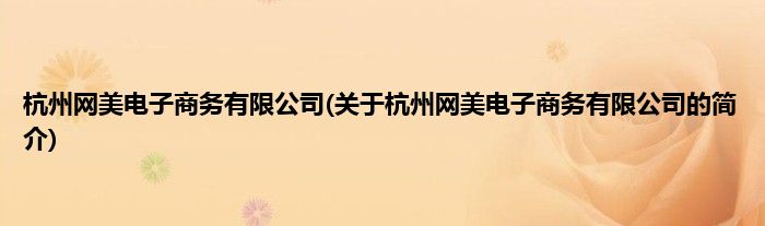 本文关于杭州网美电子商务有限公司的简介就讲解完毕,希望对大家有所帮助。