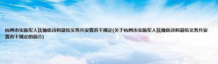 大家好,杭州市实施军人抚恤优待和退伍义务兵安置若干规定,关于杭州市实施军人抚恤优待和退伍义务兵安置若干规定的简介很多人还不知道,现在让我们一起来看看吧!