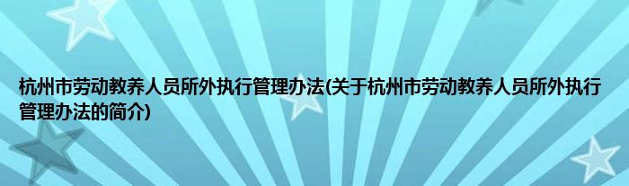 本文关于杭州市劳动教养人员所外执行管理办法的简介就讲解完毕,希望对大家有所帮助。