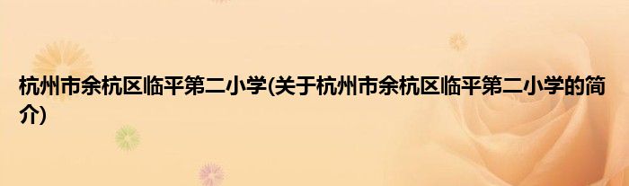 大家好,杭州市余杭区临平第二小学,关于杭州市余杭区临平第二小学的简介很多人还不知道,现在让我们一起来看看吧!