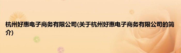 本文关于杭州好惠电子商务有限公司的简介就讲解完毕,希望对大家有所帮助。