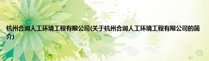 杭州合润人工环境工程有限公司(关于杭州合润人工环境工程有限公司的简介)