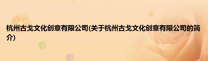 本文关于杭州古戈文化创意有限公司的简介就讲解完毕,希望对大家有所帮助。