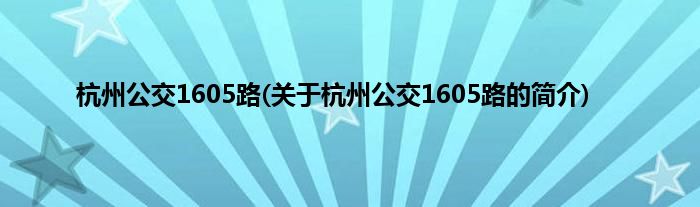 杭州公交1605路(关于杭州公交1605路的简介)