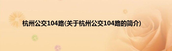 本文关于杭州公交104路的简介就讲解完毕,希望对大家有所帮助。
