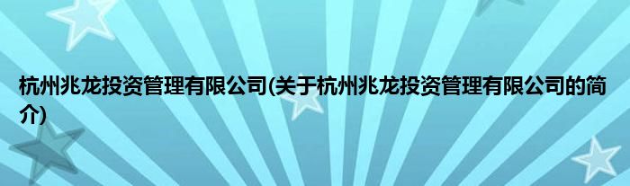 本文关于杭州兆龙投资管理有限公司的简介就讲解完毕,希望对大家有所帮助。