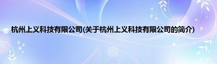 杭州上义科技有限公司(关于杭州上义科技有限公司的简介)