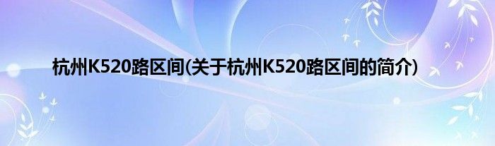 杭州K520路区间(关于杭州K520路区间的简介)