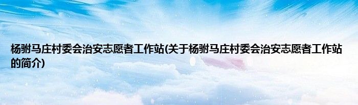 杨驸马庄村委会治安志愿者工作站(关于杨驸马庄村委会治安志愿者工作站的简介)