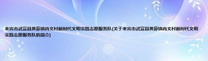 本文关于来宾市武宣县黄茆镇尚文村新时代文明实践志愿服务队的简介就讲解完毕,希望对大家有所帮助。