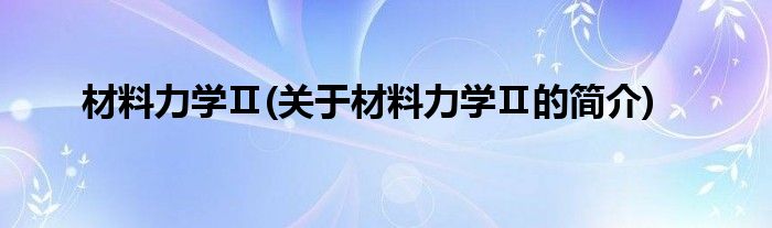 大家好,材料力学Ⅱ,关于材料力学Ⅱ的简介很多人还不知道,现在让我们一起来看看吧!