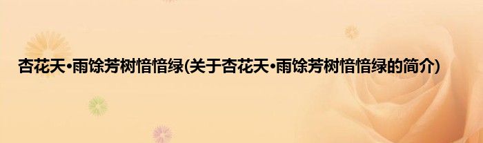本文关于杏花天·雨馀芳树愔愔绿的简介就讲解完毕,希望对大家有所帮助。