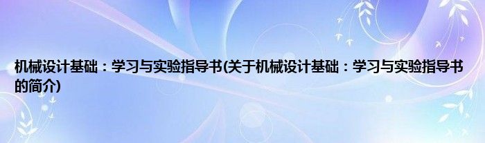 本文关于机械设计基础:学习与实验指导书的简介就讲解完毕,希望对大家有所帮助。