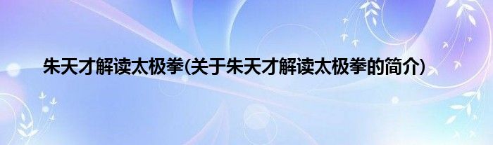 本文关于朱天才解读太极拳的简介就讲解完毕,希望对大家有所帮助。