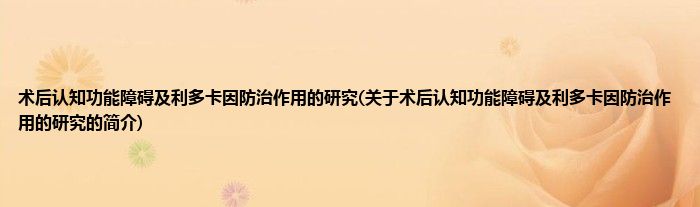 大家好,术后认知功能障碍及利多卡因防治作用的研究,关于术后认知功能障碍及利多卡因防治作用的研究的简介很多人还不知道,现在让我们一起来看看吧!