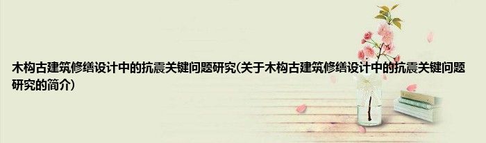 本文关于木构古建筑修缮设计中的抗震关键问题研究的简介就讲解完毕,希望对大家有所帮助。