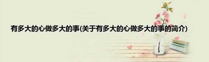 本文关于有多大的心做多大的事的简介就讲解完毕,希望对大家有所帮助。