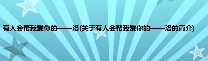 本文关于有人会帮我爱你的——洛的简介就讲解完毕,希望对大家有所帮助。