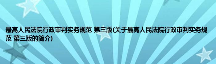 本文关于最高人民法院行政审判实务规范 第三版的简介就讲解完毕,希望对大家有所帮助。