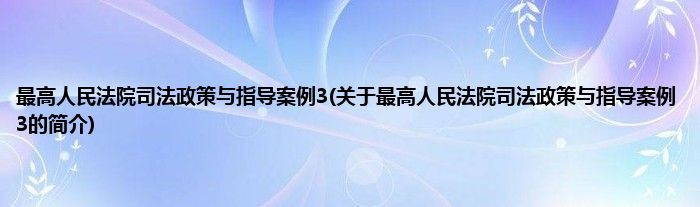 大家好,最高人民法院司法政策与指导案例3,关于最高人民法院司法政策与指导案例3的简介很多人还不知道,现在让我们一起来看看吧!