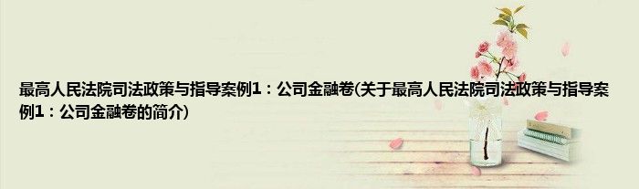 本文关于最高人民法院司法政策与指导案例1:公司金融卷的简介就讲解完毕,希望对大家有所帮助。