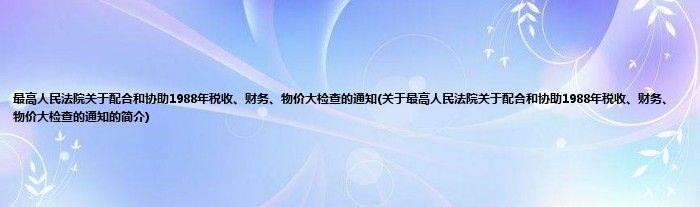 本文关于最高人民法院关于配合和协助1988年税收、财务、物价大检查的通知的简介就讲解完毕,希望对大家有所帮助。