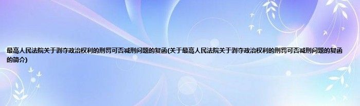 最高人民法院关于剥夺政治权利的刑罚可否减刑问题的复函(关于最高人民法院关于剥夺政治权利的刑罚可否减刑问题的复函的简介)