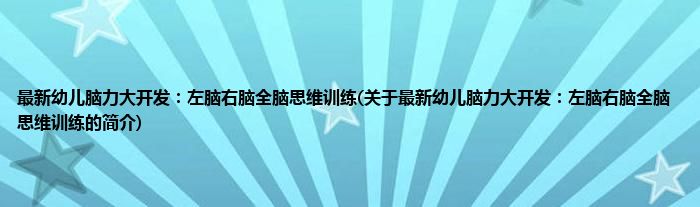 本文关于最新幼儿脑力大开发:左脑右脑全脑思维训练的简介就讲解完毕,希望对大家有所帮助。