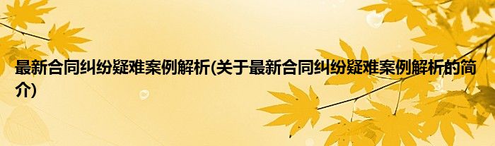本文关于最新合同纠纷疑难案例解析的简介就讲解完毕,希望对大家有所帮助。