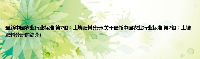 本文关于最新中国农业行业标准 第7辑:土壤肥料分册的简介就讲解完毕,希望对大家有所帮助。