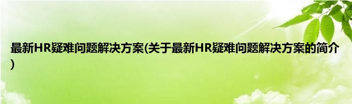 本文关于最新HR疑难问题解决方案的简介就讲解完毕,希望对大家有所帮助。