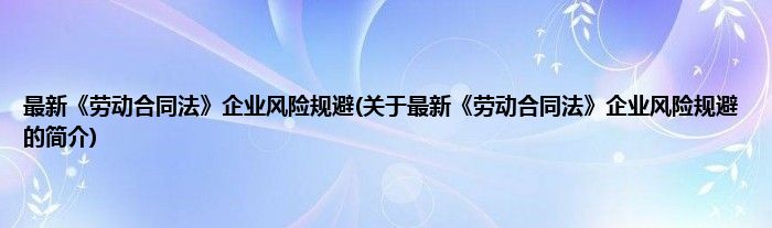 本文关于最新《劳动合同法》企业风险规避的简介就讲解完毕,希望对大家有所帮助。