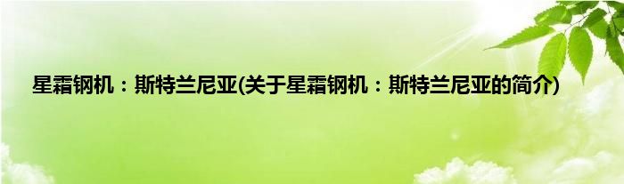 本文关于星霜钢机:斯特兰尼亚的简介就讲解完毕,希望对大家有所帮助。