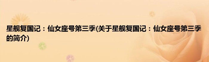 大家好,星舰复国记:仙女座号第三季,关于星舰复国记:仙女座号第三季的简介很多人还不知道,现在让我们一起来看看吧!