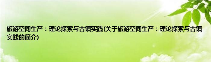 本文关于旅游空间生产:理论探索与古镇实践的简介就讲解完毕,希望对大家有所帮助。