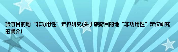 大家好,旅游目的地“非功用性”定位研究,关于旅游目的地“非功用性”定位研究的简介很多人还不知道,现在让我们一起来看看吧!