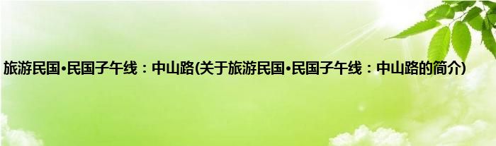 本文关于旅游民国·民国子午线:中山路的简介就讲解完毕,希望对大家有所帮助。
