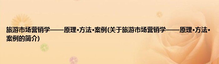 本文关于旅游市场营销学——原理·方法·案例的简介就讲解完毕,希望对大家有所帮助。