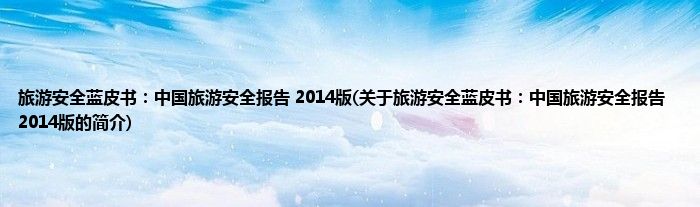 旅游安全蓝皮书:中国旅游安全报告2014版(关于旅游安全蓝皮书:中国旅游安全报告...