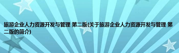 旅游企业人力资源开发与管理第二版(关于旅游企业人力资源开发与管理第二版的简介)