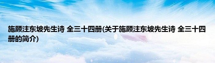 施顾注东坡先生诗全三十四册(关于施顾注东坡先生诗全三十四册的简介)