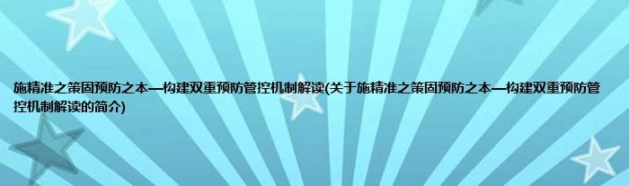大家好,施精准之策固预防之本—构建双重预防管控机制解读,关于施精准之策固预防之本—构建双重预防管控机制解读的简介很多人还不知道,现在让我们一起来看看吧!