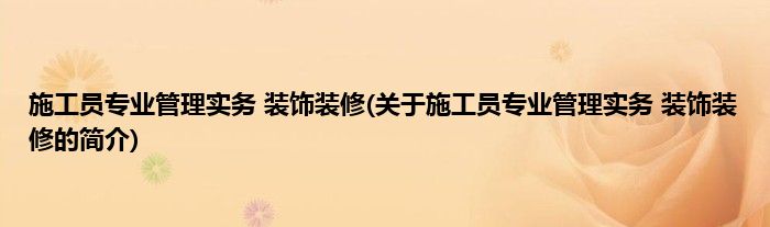 大家好,施工员专业管理实务 装饰装修,关于施工员专业管理实务 装饰装修的简介很多人还不知道,现在让我们一起来看看吧!