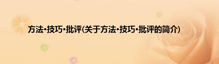 本文关于方法·技巧·批评的简介就讲解完毕,希望对大家有所帮助。