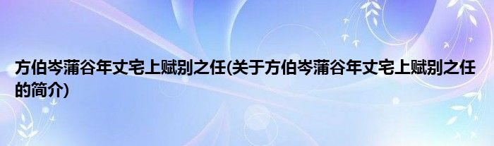 方伯岑蒲谷年丈宅上赋别之任(关于方伯岑蒲谷年丈宅上赋别之任的简介)