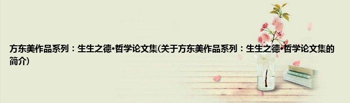 1、 《方东美作品系列:生生之德·哲学论文集》是方东美作品中的一册,是作者单篇哲学论文的合集。