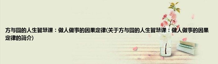 本文关于方与圆的人生智慧课:做人做事的因果定律的简介就讲解完毕,希望对大家有所帮助。