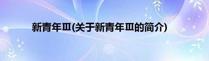 大家好,新青年Ⅲ,关于新青年Ⅲ的简介很多人还不知道,现在让我们一起来看看吧!