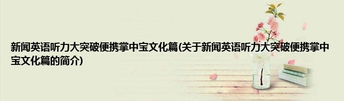 本文关于新闻英语听力大突破便携掌中宝文化篇的简介就讲解完毕,希望对大家有所帮助。