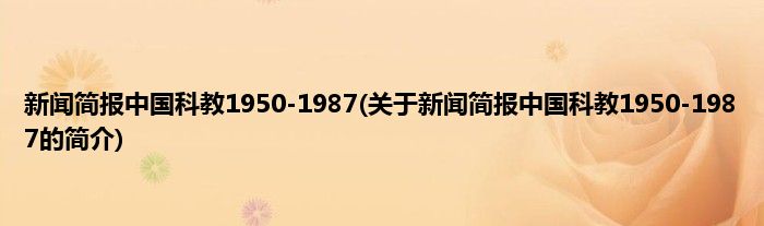 本文关于新闻简报中国科教1950-1987的简介就讲解完毕,希望对大家有所帮助。